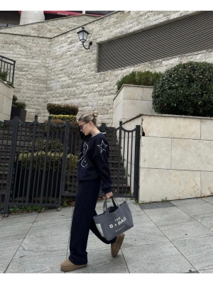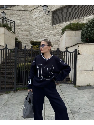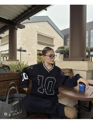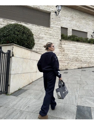 Üç İplik Yakalı Sweat Baggy Pantalonlu Takım - Siyah