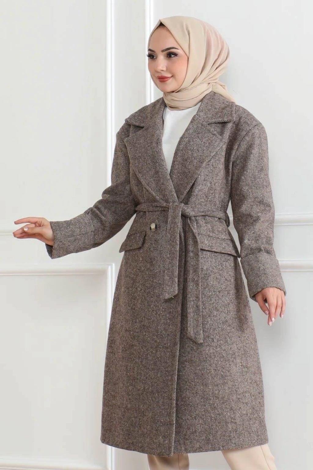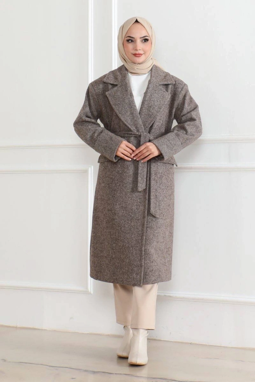 | Ürün açıklaması | Kış aylarında şıklığı ve sıcaklığı bir arada sunan bu uzun boy kaşe kaban, içi astarlı yapısıyla ekstra konfor sağlarken düğmeli tasarımıyla da modern bir görünüm sunar. %95 kaşe ve %5 akrilik kumaş karışımı ile dayanıklı ve sıcak tutan bu kaban, tesettür giyime uygun olarak tasarlanmıştır. Kruvaze yaka ve beldeki ayarlanabilir kuşak detayı ile vücut hatlarını zarifçe öne çıkarırken, öndeki düğme detayları sayesinde klasik bir şıklık katar. Geniş koleksiyon seçenekleriyle hem günlük hem de özel gün kombinlerinizi tamamlayacak bu kaban, kış gardırobunuzun vazgeçilmezi olacak. |