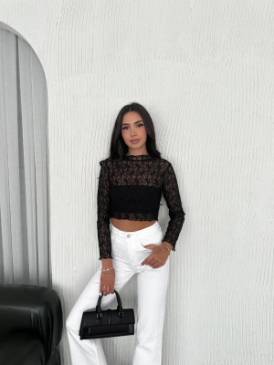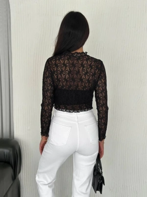 Kadın Dantel Uzun Kol Bluz- Siyah