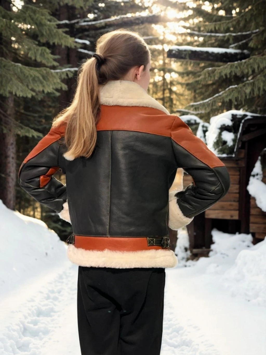 • Çocuk Yakalı Parçalı Kürk - Kiremit