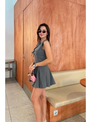 Bağcık detaylı Kolsuz Mini Elbise - Antrasit