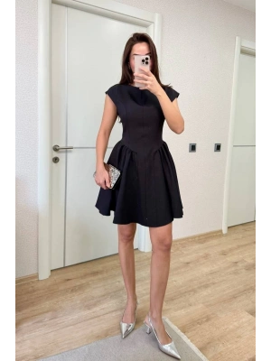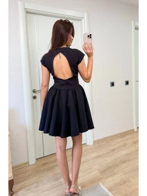 Sırt dekolteli Çan Detaylı Mini Elbise - Siyah