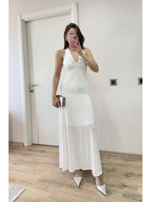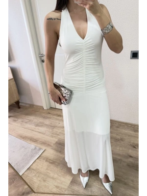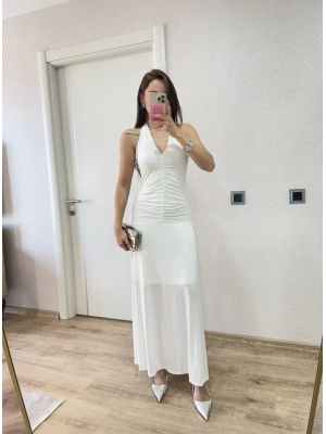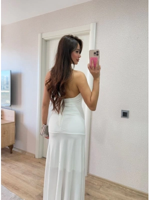 Sırt dekolteli Uzun Elbise - Beyaz
