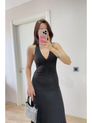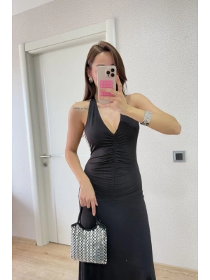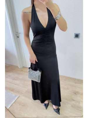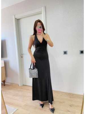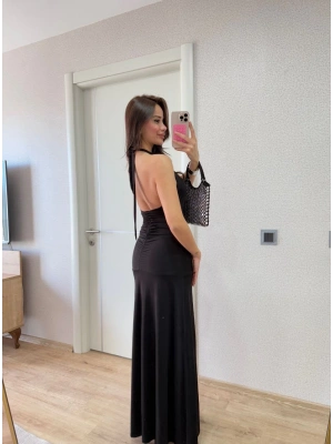Sırt dekolteli Uzun Elbise - Siyah
