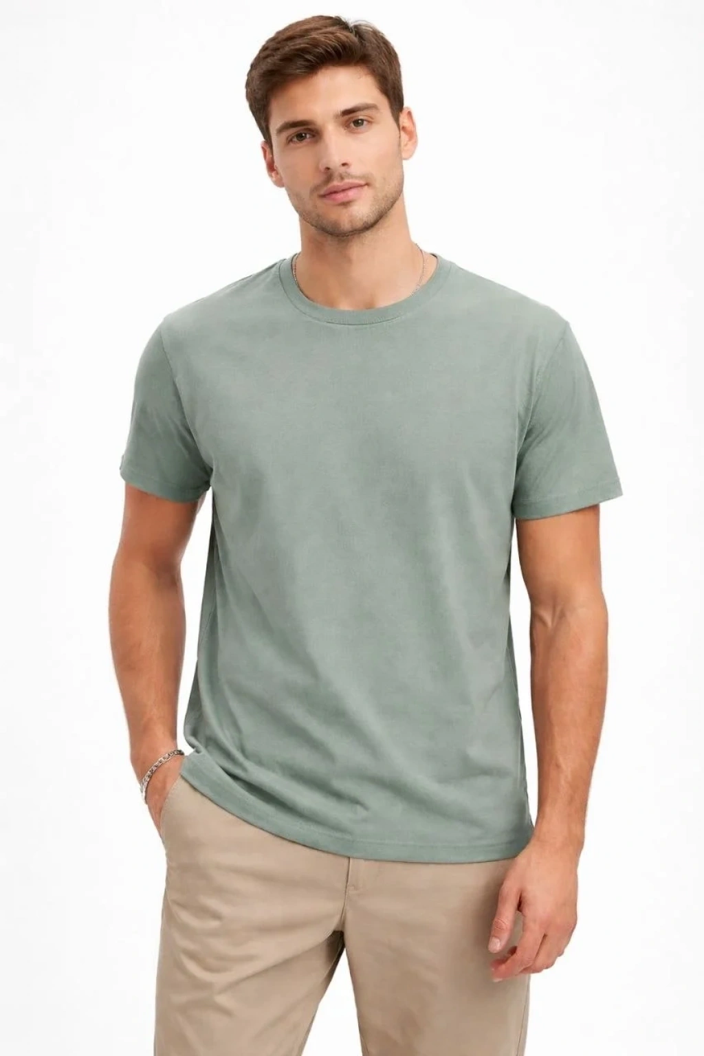 Erkek Bisiklet Yaka Tişört Regular Kalıp Basic Pamuklu Günlük Kullanım T-shirt - Mint Yeşili