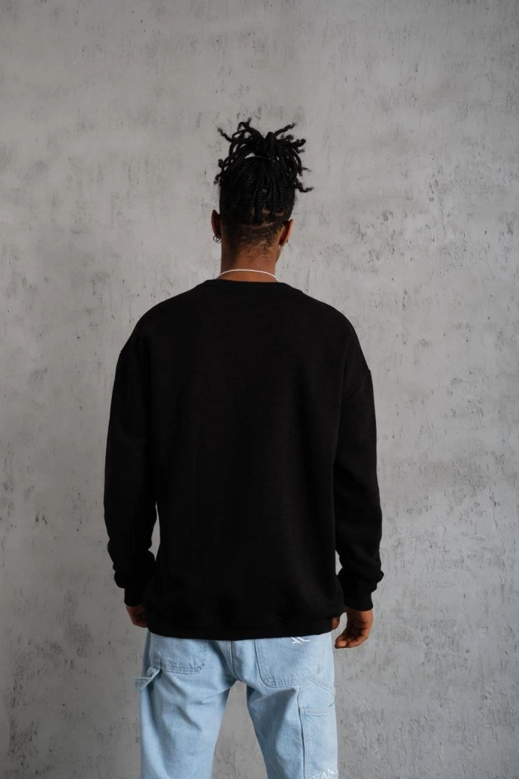 • Erkek Düz Bisiklet Yaka Sweat - Siyah