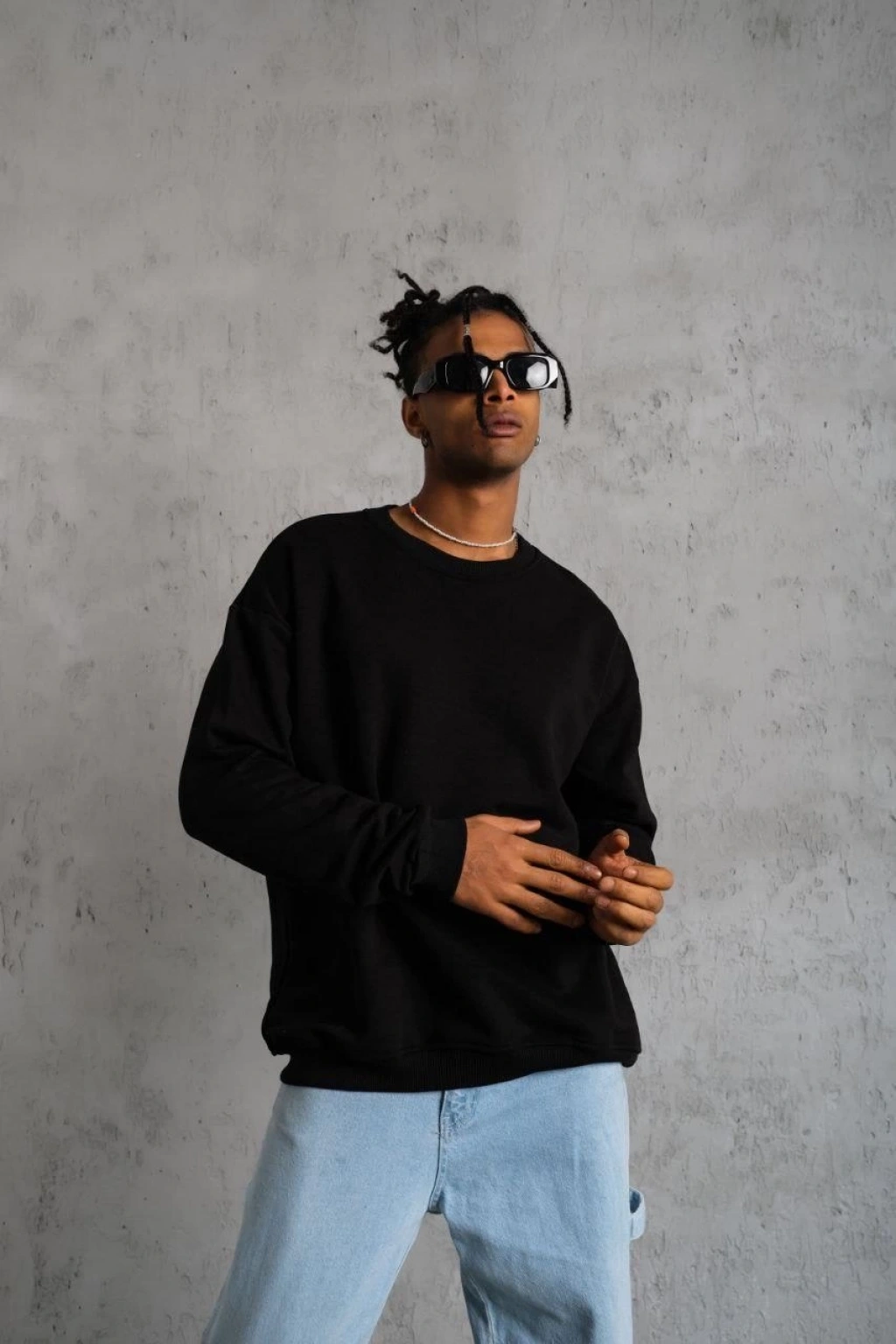 Erkek Düz Bisiklet Yaka Sweat - Siyah