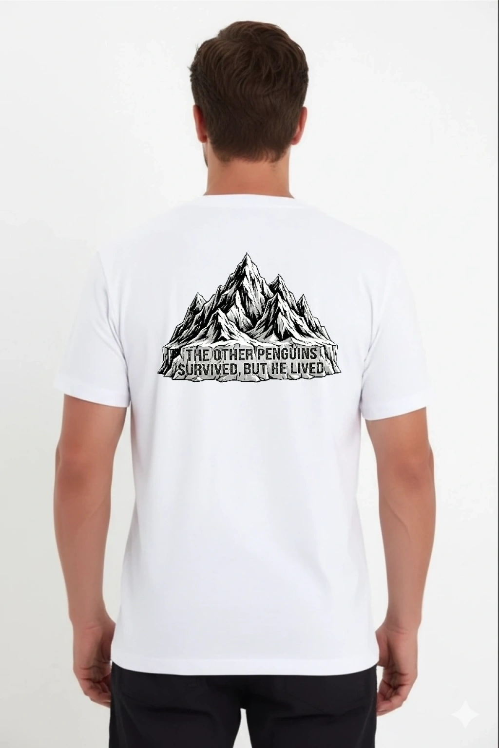 Erkek Nihilist Penguen Temalı Oversize Bisiklet Yaka Tişört - Beyaz