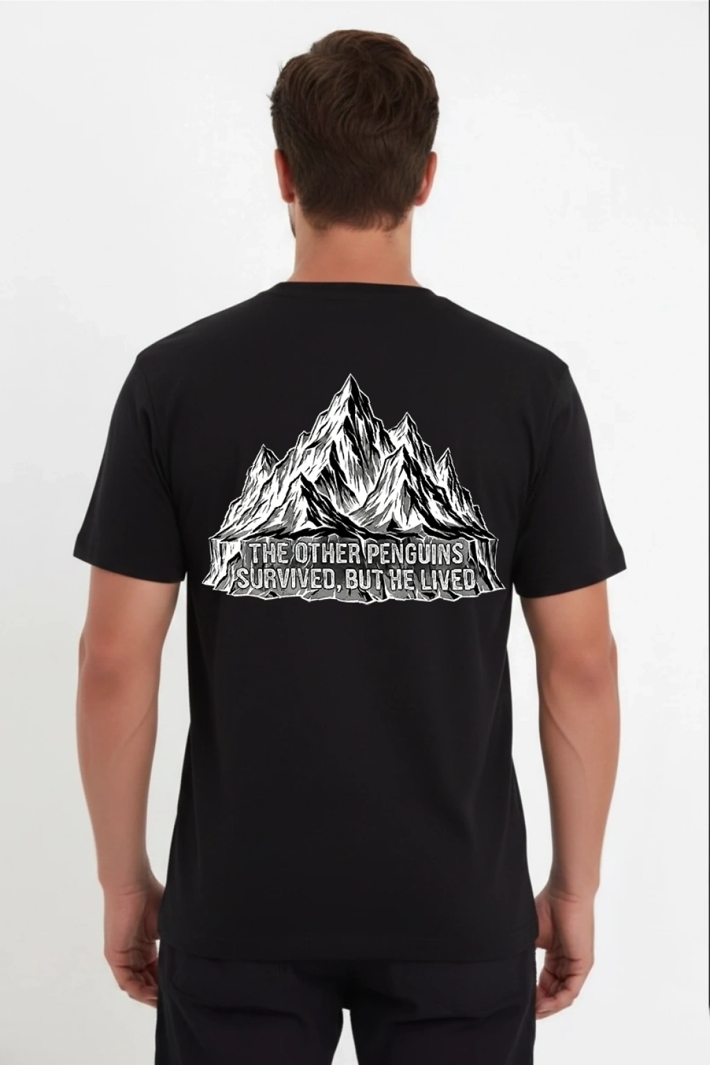 Erkek Nihilist Penguen Temalı Oversize Bisiklet Yaka Tişört - Siyah