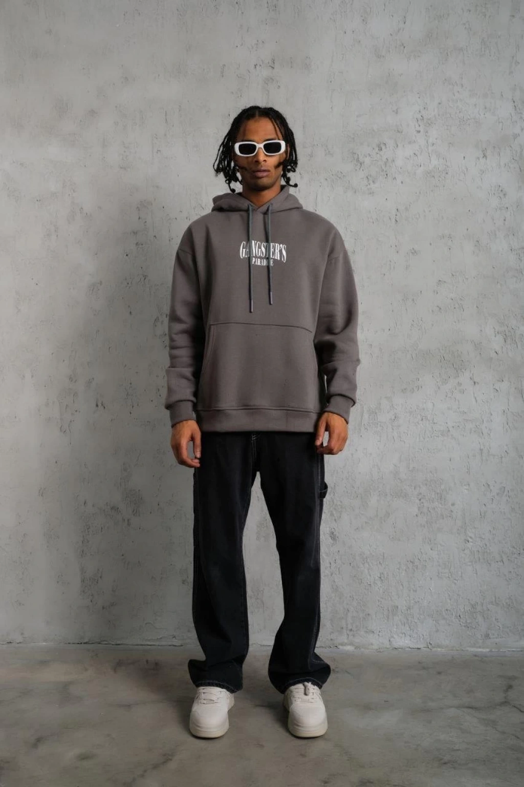 • Erkek Paradise Baskılı Kapüşonlu Sweat - Gri