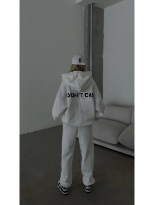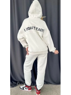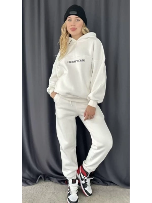 Nakış İşlemeli Üç İplik Sweat Takım- Beyaz