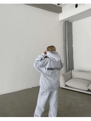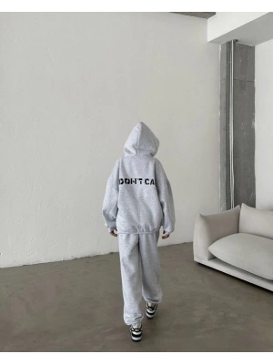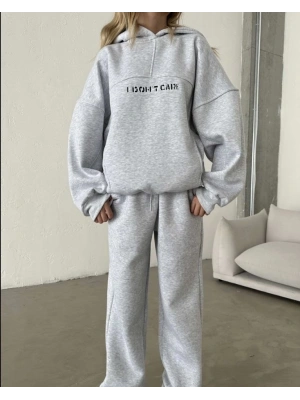Nakış İşlemeli Üç İplik Sweat Takım- Gri