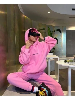 Nakış İşlemeli Üç İplik Sweat Takım- Pembe