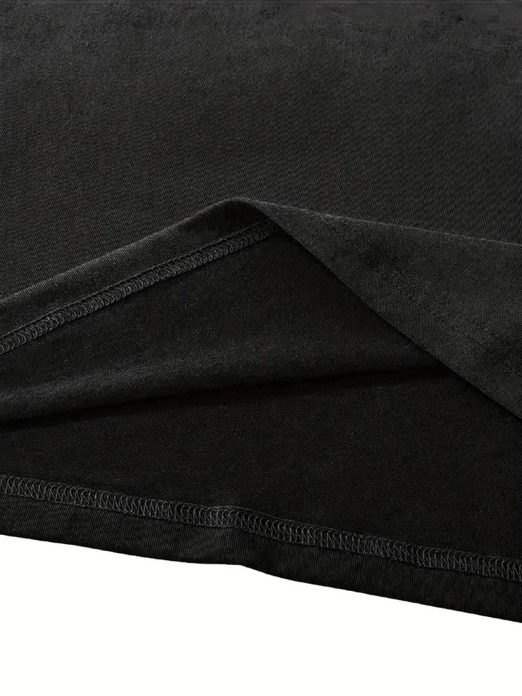 Kadın fiyonk baskılı siyah oversize Kısa Kol t-shirt- Siyah