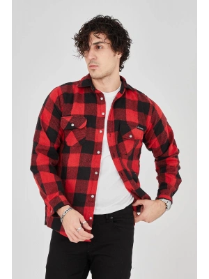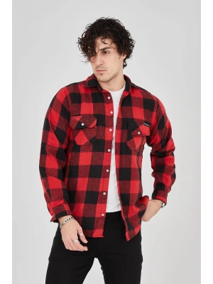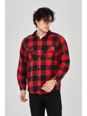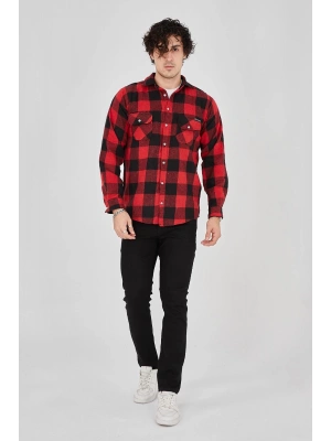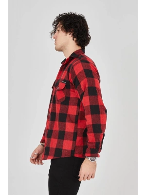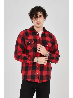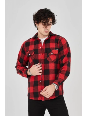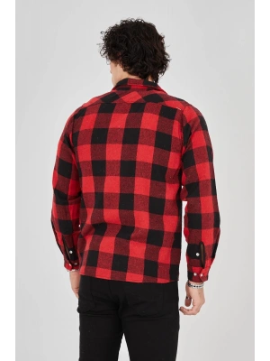 Erkek Oduncu Gömlek Uzun Kollu Şardonlu Kareli Desen Regular Fit Manşetli Çift - Kırmızı