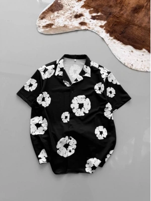 Erkek İki İplik Kumaş Dijital Baskılı Gömlek - Siyah