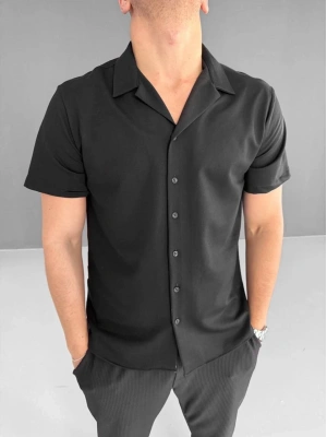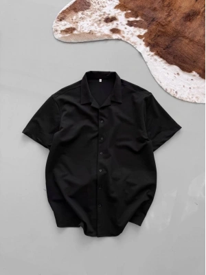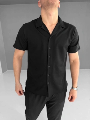 Erkek İki İplik Kumaş Gömlek - Siyah