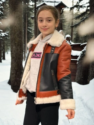 Çocuk Yakalı Parçalı Kürk - Kiremit