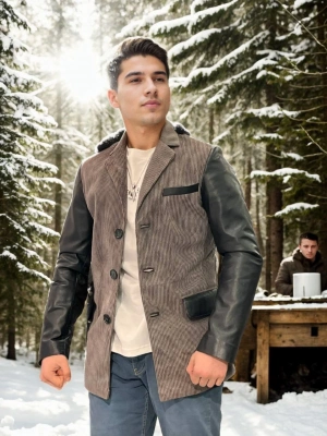Erkek Nubuk Deri Ceket - Siyah