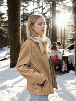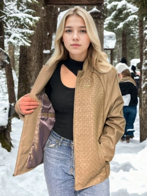 Kadın Fileli Deri Ceket - Krem