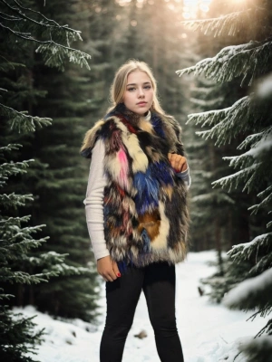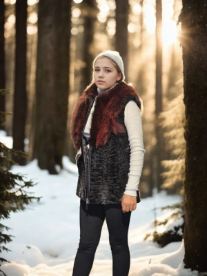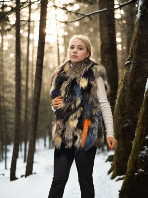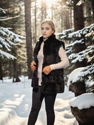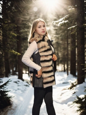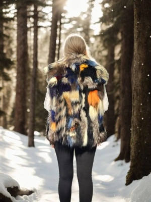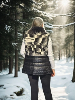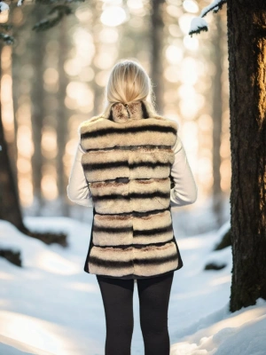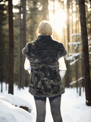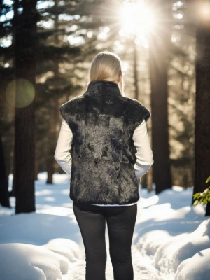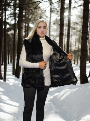 Kadın Kolsuz Hakiki Kürk - Siyah