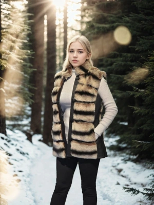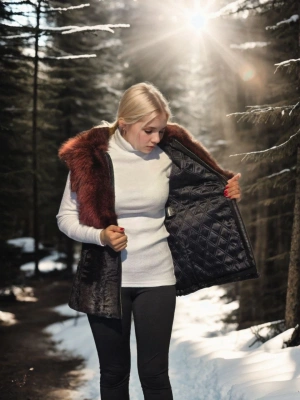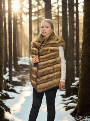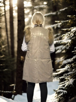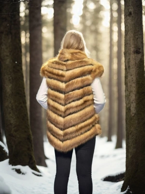Kadın Kolsuz Hakiki Kürk - Kahve