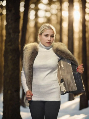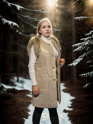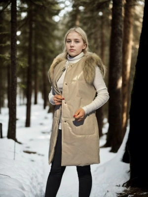 Kadın Kolsuz Hakiki Deri Kürk - Krem
