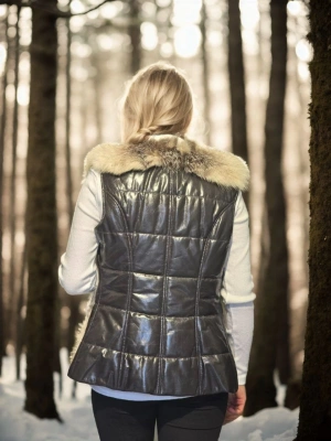Kadın Kolsuz Hakiki Deri Kürk - Siyah