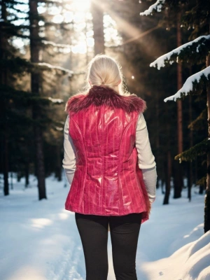 Kadın Kolsuz Hakiki Yelek - Fuşya