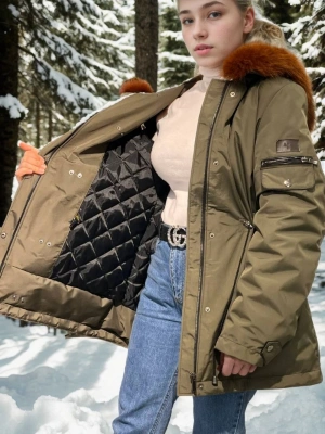 Kadın Su Geçirmez Kapüşonlu Mont - Haki