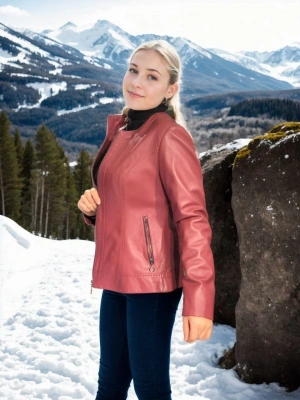 Kadın Uzun Kollu Deri Ceket - Bordo