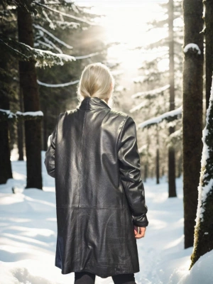 Kadın Uzun Kollu Hakiki Deri Kürk - Siyah