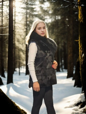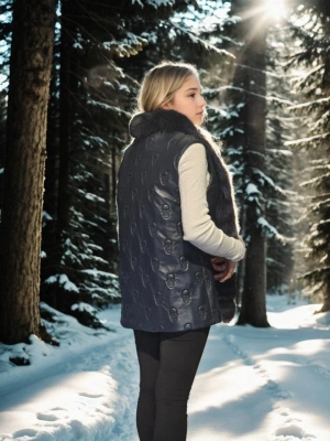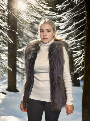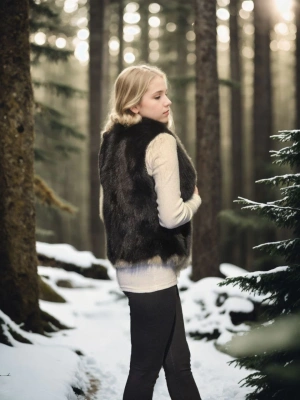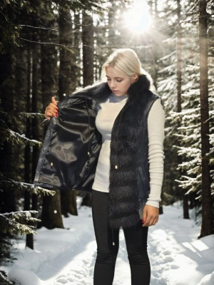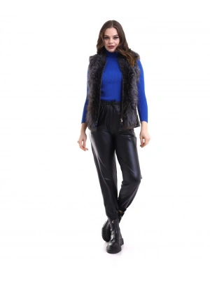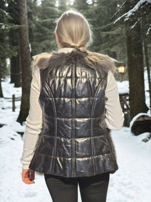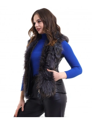 Kadın Kolsuz Hakiki Deri Kürk - Siyah
