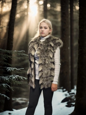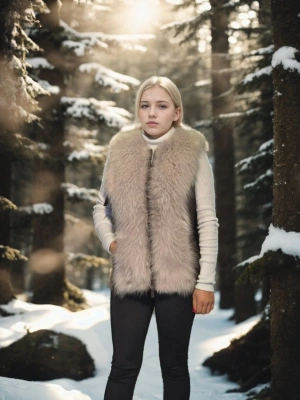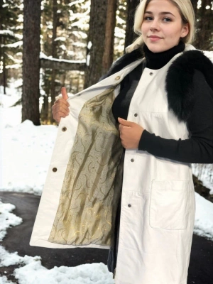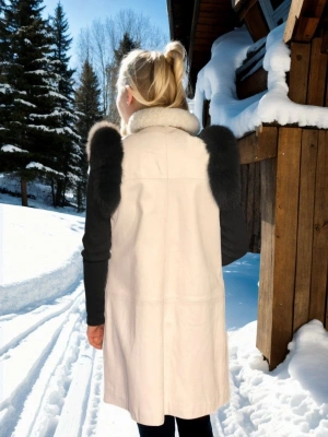 Kadın Kolsuz Hakiki Deri Kürk - Beyaz