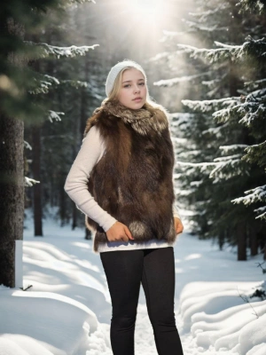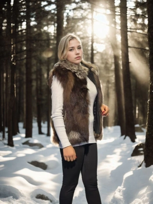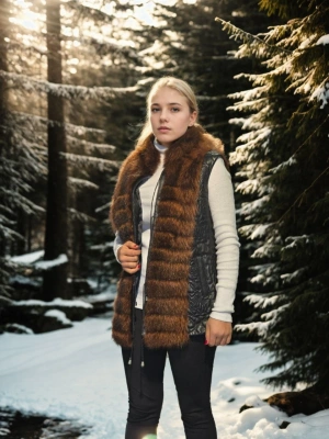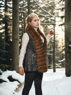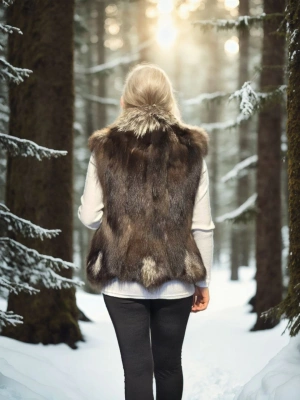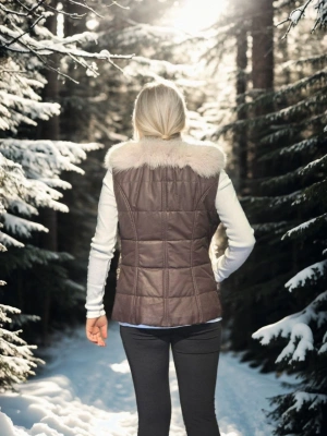 Kadın Kolsuz Hakiki Deri Kürk - Kahve