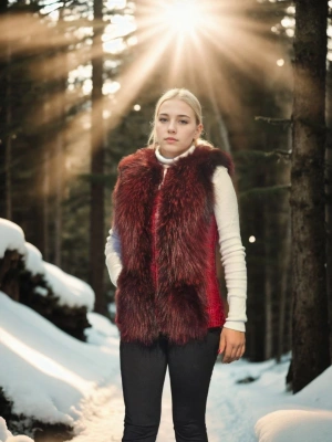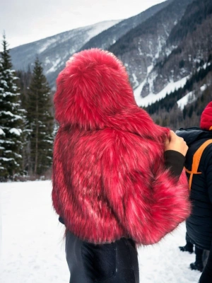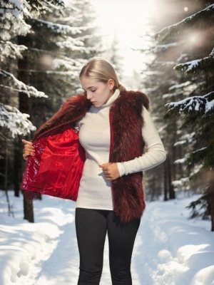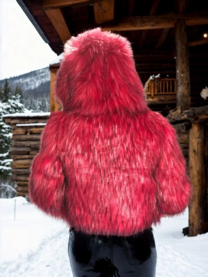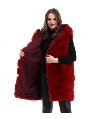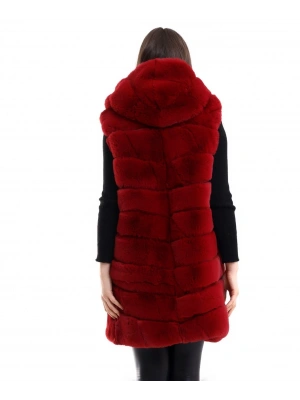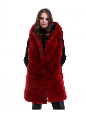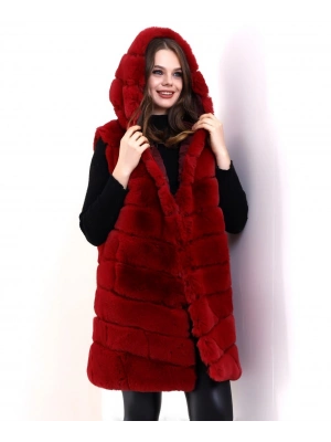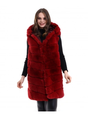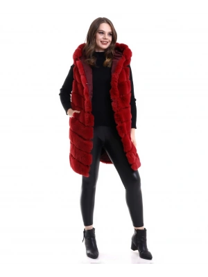 Kadın Reks Kapüşonlu Yelek - Kırmızı