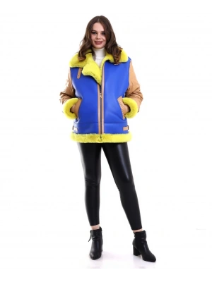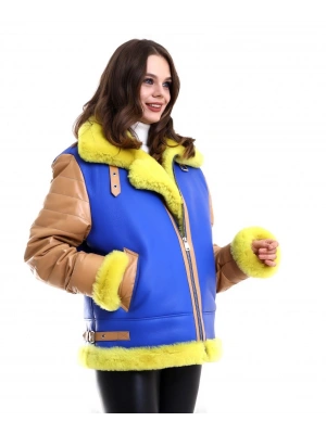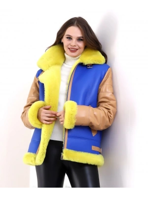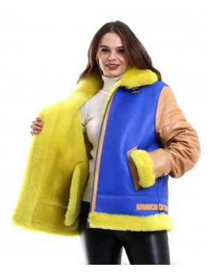 Kadın Koyun Derisi Pilot Hakiki Kürk - Sarı