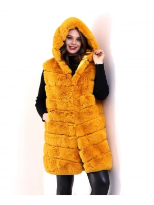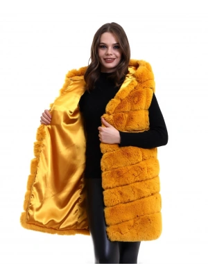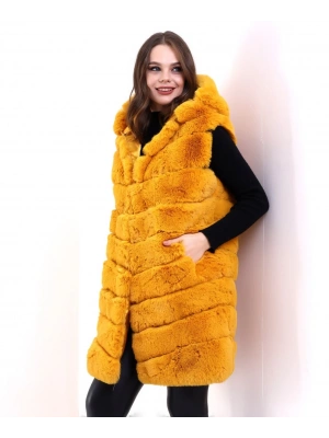 Kadın Reks Kapüşonlu Yelek - Sarı