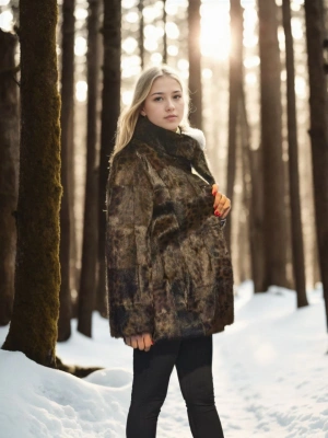 Kadın Fermuarlı Koyun Derisi Tilki Kürkü - Siyah