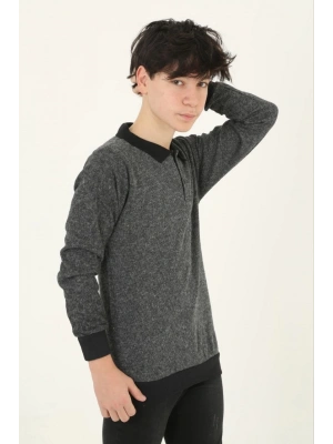 Çocuk Selanik Yaka Nakışlı Kazak - Gri