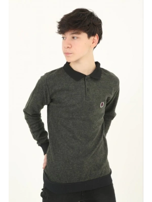 Çocuk Selanik Yaka Nakışlı Kazak - Haki