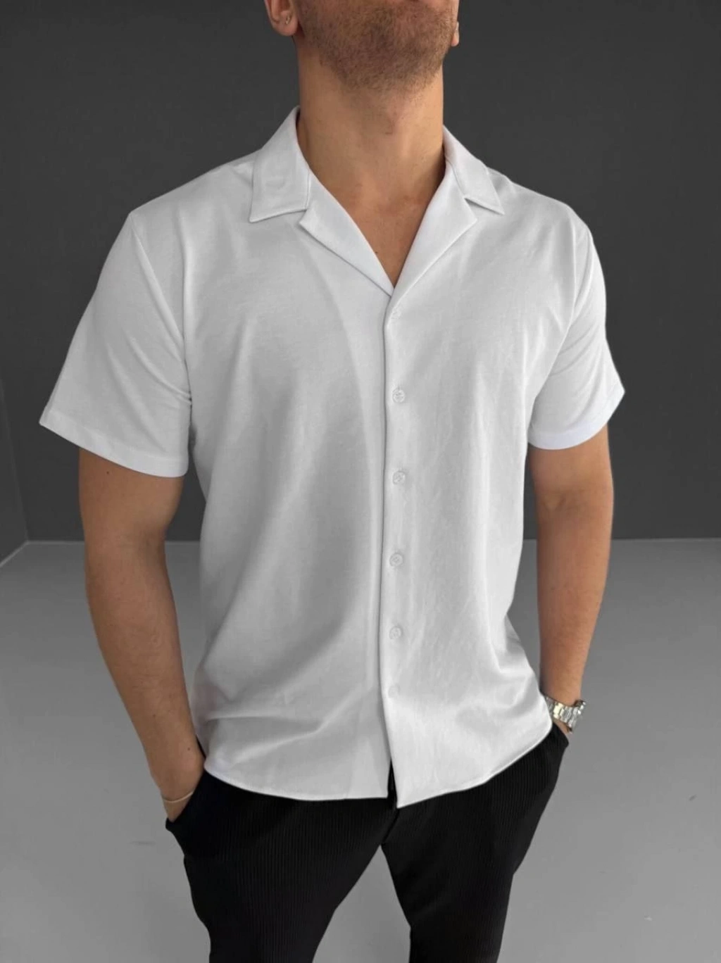 İki İplik Kumaş Gömlek - Beyaz