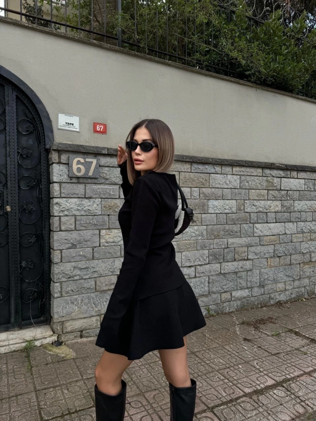 İkili Fermuarlı Hırkalı Etekli Takım - Siyah