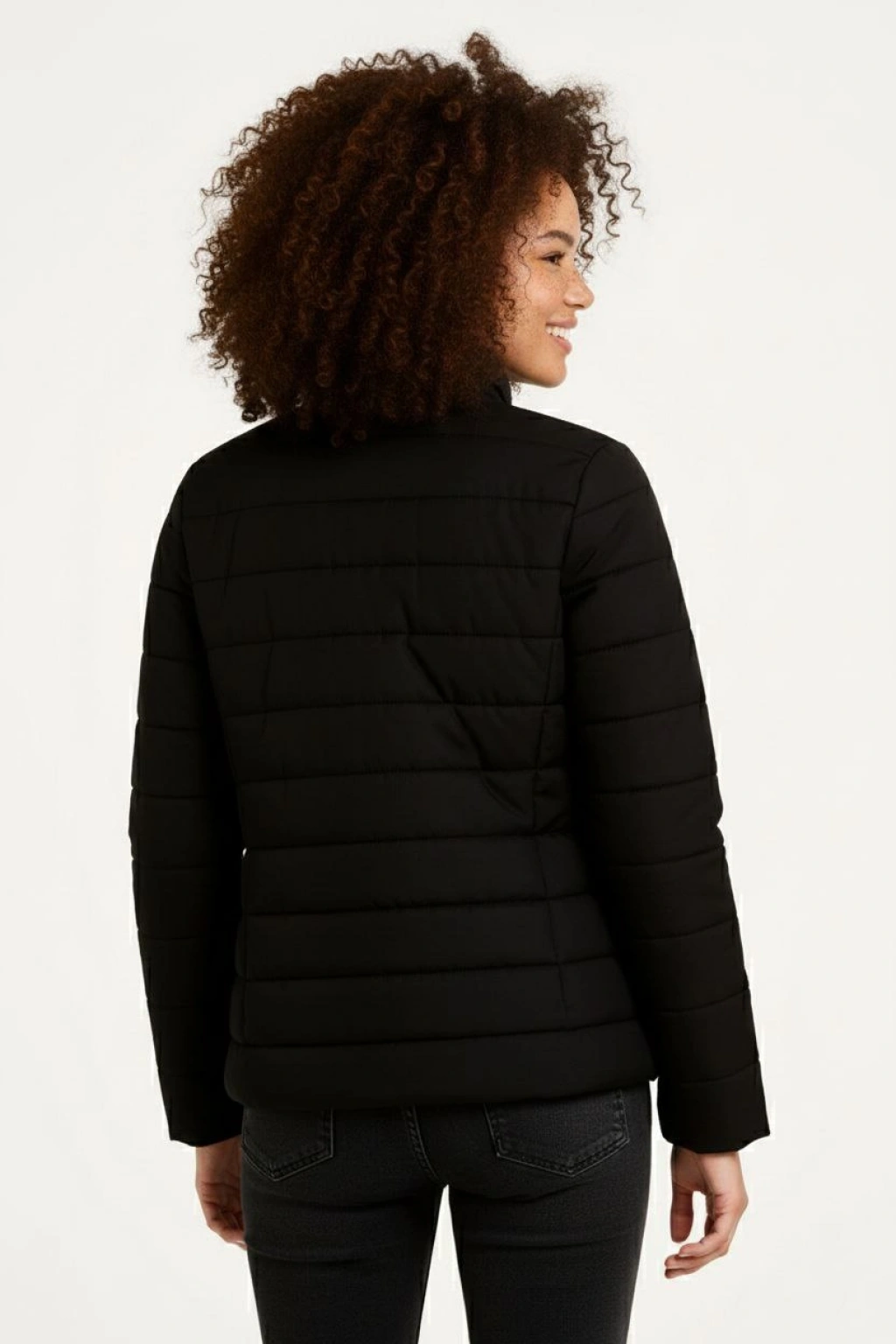 Kadın Mikro Su İtici Kapitone Baskılı Astarlı Fermuarlı Bomber Mont - Siyah