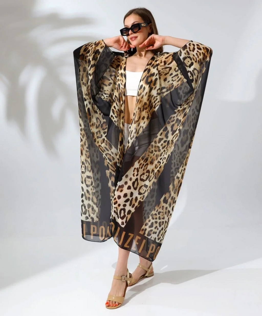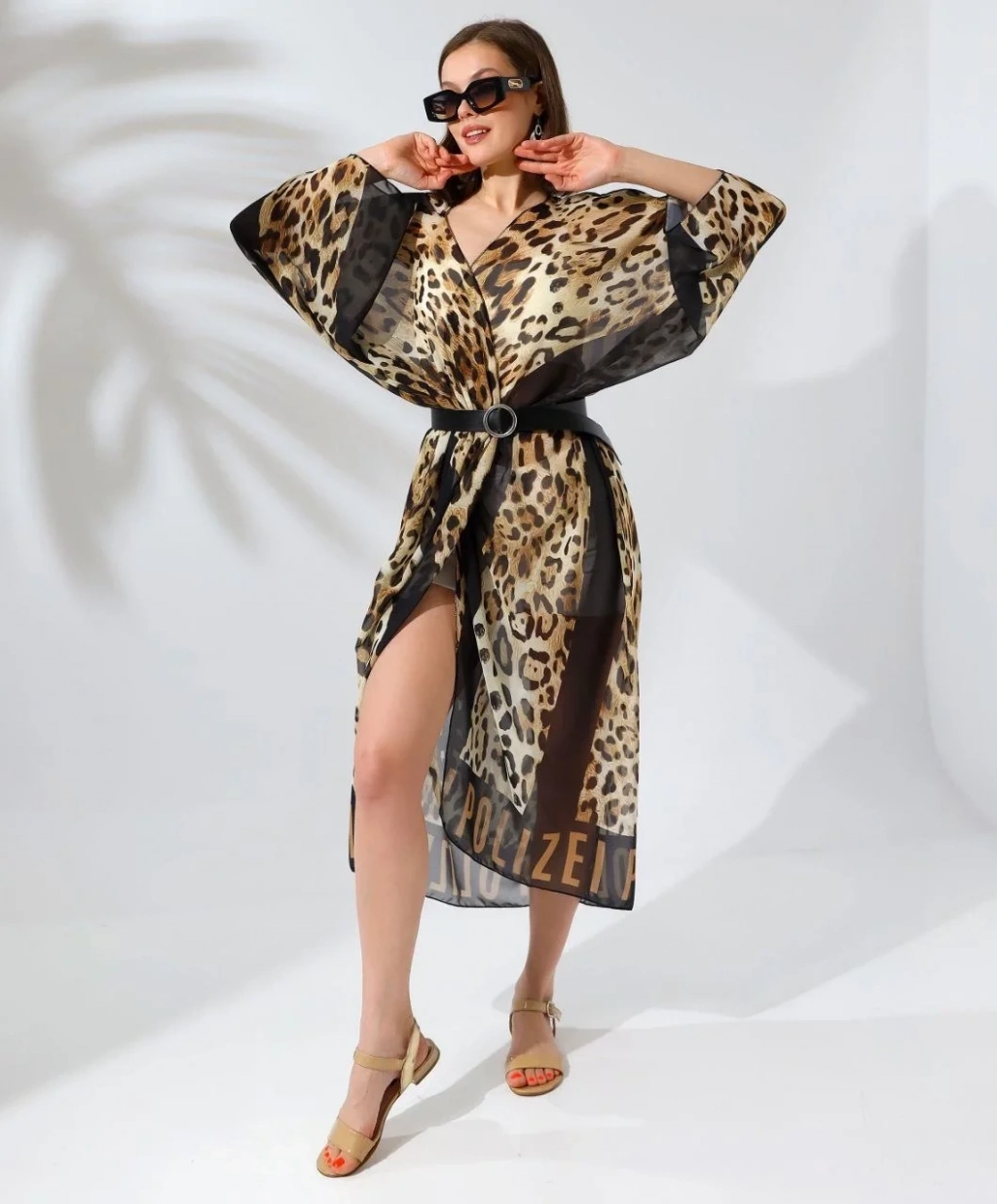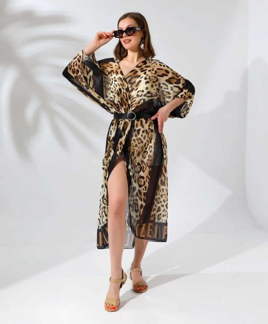 Kadın Rahat Kesim Şifon Kimono - Leopar