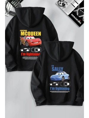 Sevgililer Günü Özel Kapüşonlu Araba Baskılı Oversize Sweatshirt - Siyah