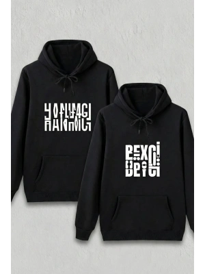 Sevgililer Günü Özel Kapüşonlu Beyci Baskılı Oversize Sweatshirt - Siyah