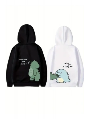 Sevgililer Günü Özel Unisex Kapüşonlu Baskılı Oversize Sweatshirt - Beyaz