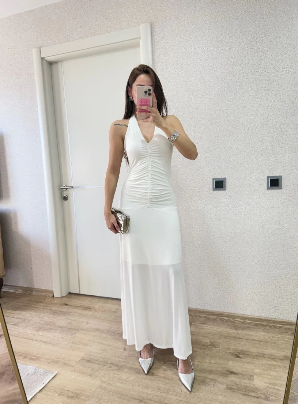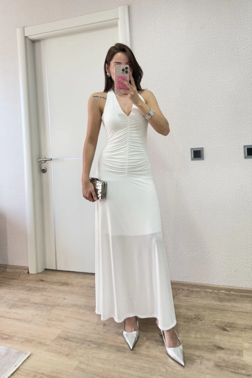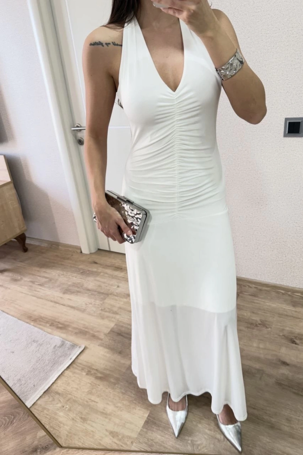 Sırt dekolteli Uzun Elbise - Beyaz