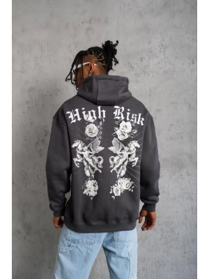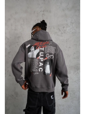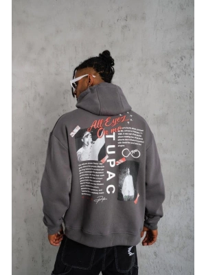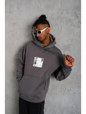 Erkek Ön Arka Baskılı Kapşonlu Sweat - Gri
